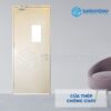 Cửa thép chống cháy có thể được thêm các dòng kính chống cháy, mắt thần để thuận tiện và thẩm mỹ
